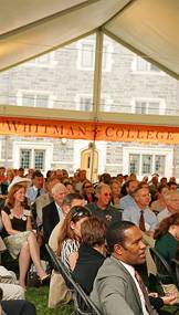 Speaking before the crowd of 350 who gathered under a tent in the 1963 Courtyard for the ceremony, Whitman said, "Princeton shaped the very person that I am today. And whether it was on the athletic fields, in the classroom, or working on some student-run initiatives or working on Business Today magazine, I learned self-confidence and I learned the benefits of being able to try things you've never done, with a little bit of a safety net."