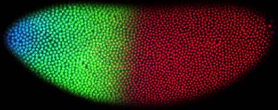 When the mother fly makes the egg, her genetic instructions create a dab of Bicoid on the end of the egg that will become the fly's head. The Bicoid then diffuses through the gloppy liquid inside the egg, its concentration falling off with distance, until there is nearly none at the tail end. Remarkably, this apparently messy cloud of molecules is one of the primary signals that nature uses to instruct each cell on its future role -- you'll be a muscle cell, while your next-door neighbor will be a nerve -- eliciting precise, sharply defined boundaries between cells and organs.