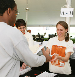 Sophomore Christine Vidmar and her track and field teammates spent a few hours during "Princeton Preview" in April working for the University as special greeters for the thousands of prospective freshmen that blanketed campus.