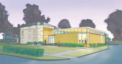 This view from Olden Street of the future home of the Fields Center at 58 Prospect Ave. shows the renovated main building at left with its original Italianate Revival-style architecture and the 5,000-square-foot addition at right. (Rendering: Courtesy of Ann Beha Architects)