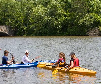 Students in the research program divide their time between labwork in Guyot Hall and fieldwork in kayaks on Lake Carnegie. The lake and contributing streams they are studying are located only a short walk away -- across Washington Road and down the hill.