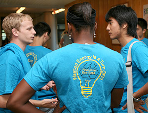 Members of the Eco-Reps student organization sported matching T-shirts with a sustainable slogan "Wasted Energy is a Turn-Off."
