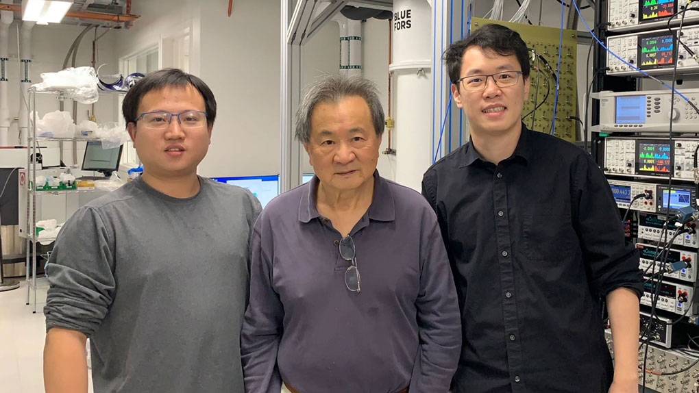 From left: Professor Sanfeng Wu, Professor Nai Phuan Ong and Dicke Fellow Tiancheng Song.