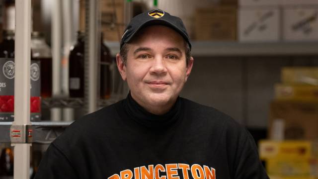 “Damon Schunk, whose Princeton career spans 35 years, is a senior storekeeper in Campus Dining. With meticulous care and abundant creativity, he oversees a significant portion of the food that keeps our University community running. Whether he is closely inspecting orders on the loading dock of Mathey and Rockefeller Colleges, minimizing wastage through skillful inventory management, or educating students about the origins and nutritional value of specific products, he exercises hands-on leadership of the finest kind.